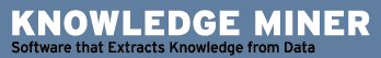 | Knowledge Miner Inc., USA | Below, please find the official product description. An individual, objective review will follow shortly ... |  | Official product & sales info: | KnowledgeMiner is a data mining tool that enables anyone to use its unique form of modelling to quickly visualize new possibilities. It is an artificial intelligence tool designed to easily extract hidden knowledge from data. It was built on the cybernetic principles of self-organization: Learning a completely unknown relationship between output and input of any given system in an evolutionary way from a very simple organization to an optimally complex one. | | | Version: | 5.0 | | | Price: | US$120.- copper - 1800.- platinum (01/10/2004) | | http://www.knowledgeminer.net |